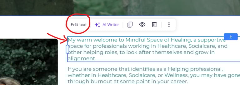Hacemos click en el párrafo y seguidamente en "Edit text" de la opción flotante.