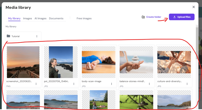b. Subir una nueva imagen pulsando en "Upload files", el botón marcado.